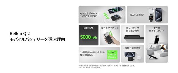 ケーブルいらずで“ピタッと充電”が外出先の正解 BelkinのQi2対応モバイルバッテリー