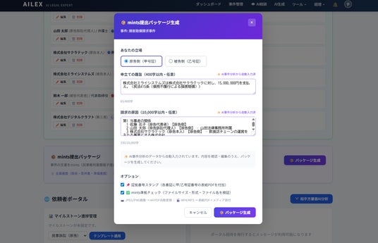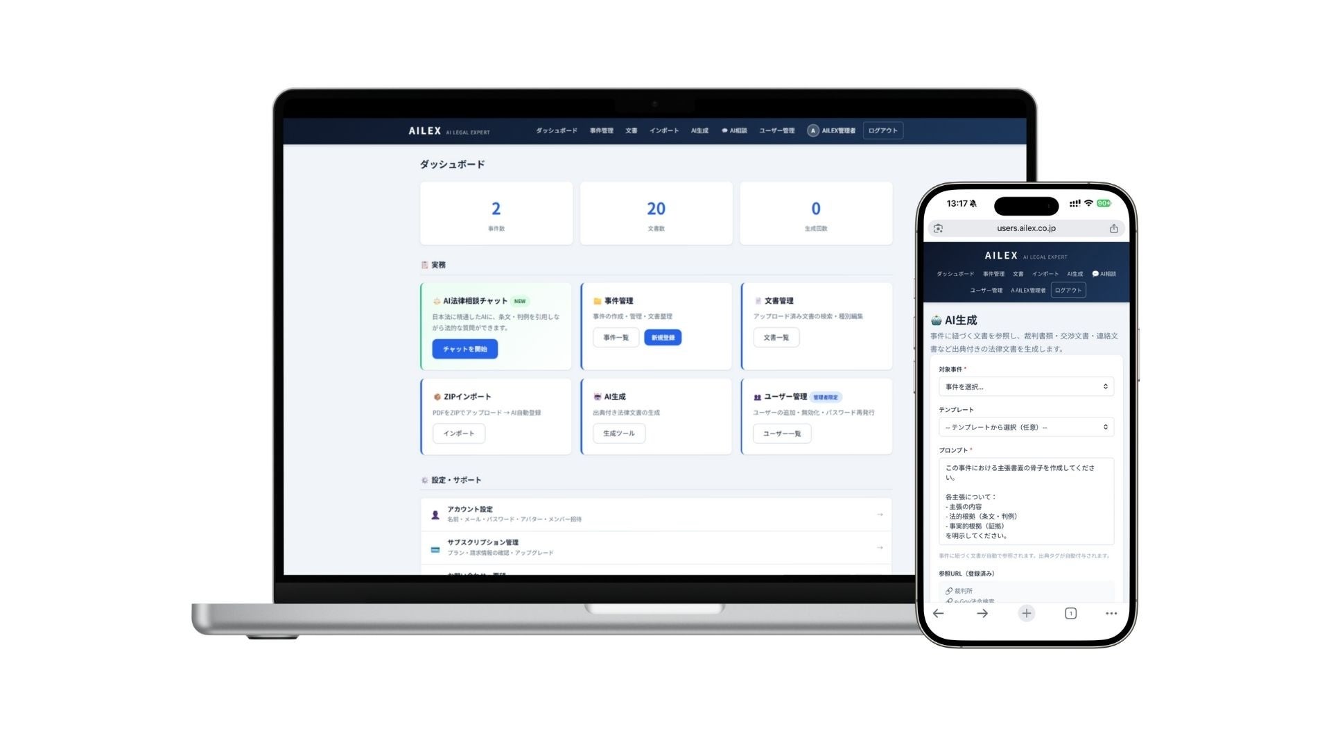 【日本初】3つのAIエンジンを採用した 1人・小~中規模法律事務所向け AI SaaS「AILEX」正式リリース。弁護士の統合OS「相棒」を目指して。2026年5月施行のmintsにも完全対応。