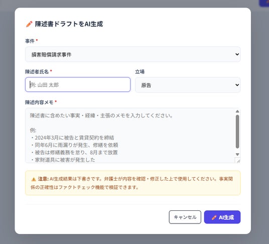 - 訴訟文書・交渉文書のAI生成(58テンプレート)