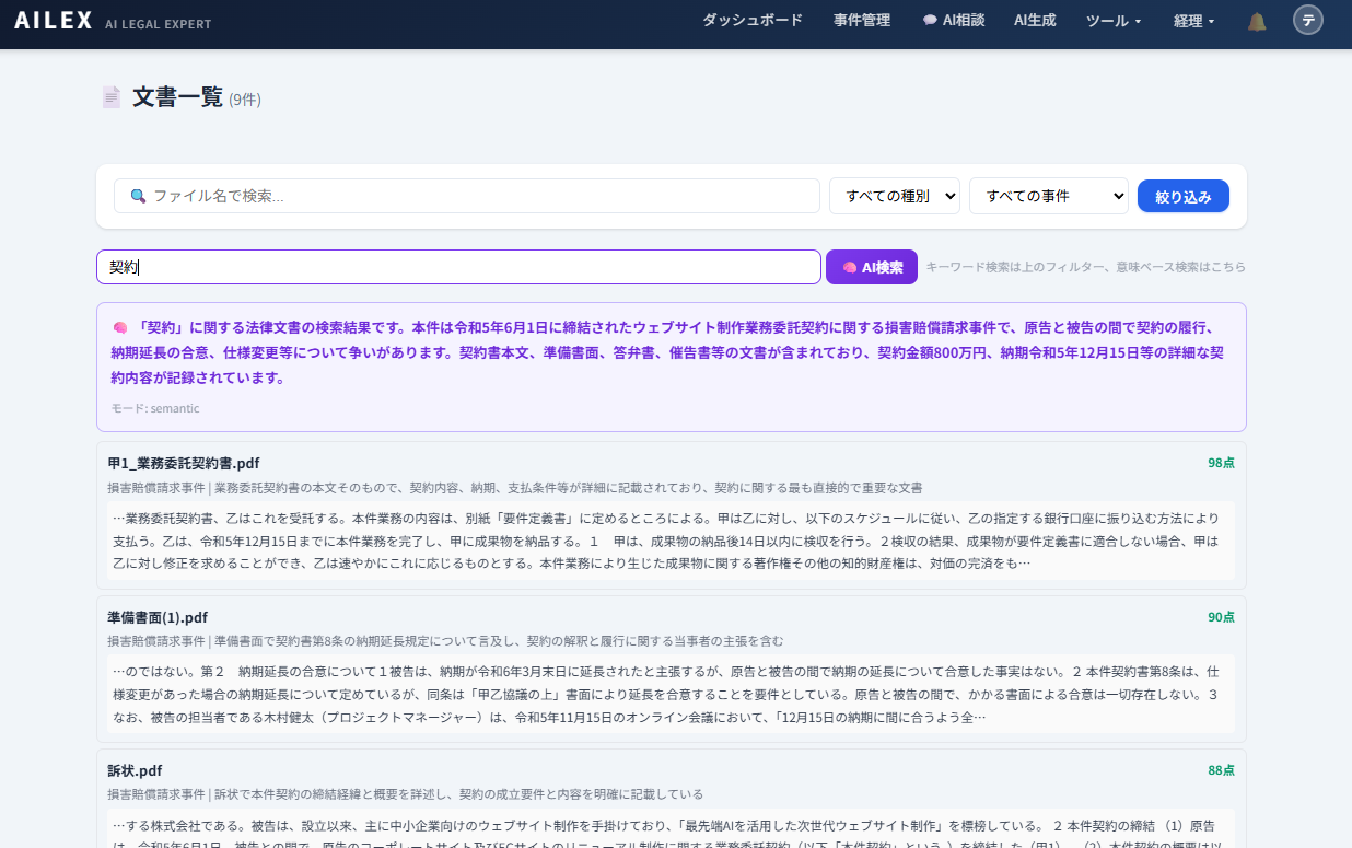 AILEXは、こうした構造的課題に対して、月額8,900円(税込)という小規模事務所でも導入しやすい価格帯で、大手事務所並みのAI機能を提供するサービスとして開発いたしました。
