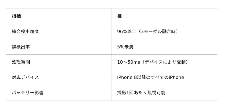 学術研究(複数大学による検証)では、人間 vs 機械的撮影の識別において95~97%の精度が報告されています。