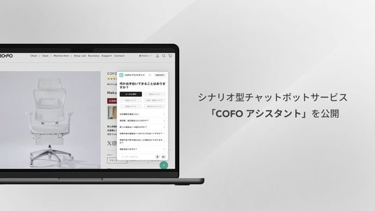 「COFOアシスタント」は、日本国内外で「リラックス×集中力」を開発理念に、「自分の理想空間の実現を叶える」ための商品を展開する株式会社COFOがカスタマーエクスペリエンス向上を目的として開発した、シナリオ型チャットボットサービスです。ブランドローンチから5年以上蓄積してきた、お客様からのよくあるお問い合わせ内容をシナリオに落とし込み、公式サイト内でのお買い物体験をよりスマートに、より簡単に実現していただけるように設計されています。各製品のお問い合わせ・トラブルシューティングはもちろん、配送状況の確認や、領収書納品書の発行、商品や保証情報の確認など、幅広いメニューに対応しており、お客様は24時間365日ご利用いただけます。