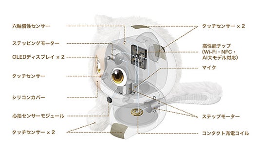軽く撫でると嬉しそうに目を細め、放っておくと不満そう。身体を前後に摇らすと目がまわってしまうことも… iMoochiの表情と反応は、いつもコ口コ口変わります!