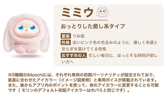 iMoochiは、触れ合いや日々の関わりを通して、少しずつ関係性が深まっていくAIペットです。やわらかな手触りと、表情や動きによるリアクションを通じて、日常の中でそっと寄り添う存在となることを目指して設計されています。