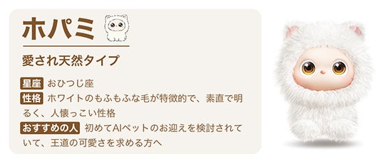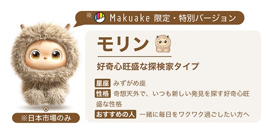 Makuake限定の「モリン」をはじめ、個性豊かな5匹があなたを待っています。 どの子も最初は、それぞれ違った「生まれ持った性格」。 けれど、触れ合えば触れ合うほど、その子らしさは変化していきます。 あなたの愛情を映し出し、世界にたった一匹のパートナーへと育っていく喜びを、ぜひ体験してください!