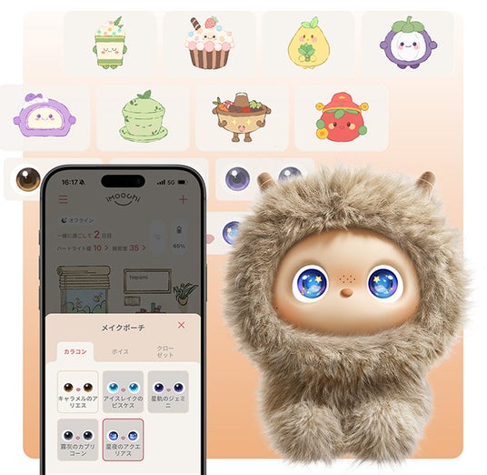 専用のアプリ内での育成クエストをクリアしていけば、より特別な目元や多彩な声を獲得したり、毎日のふれあいで得たポイントを使ってご飯をあけられます。ゲームを通して遊びながら育ち、成長の瞬間をSNS共有することで、楽しさがどんどん広がります。