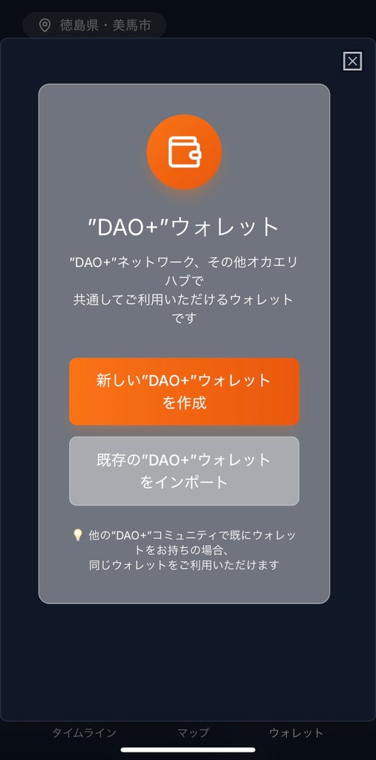 オカエリハブ/DAO+は、参加体験を阻害しないUXを重視したWeb3設計で実装しています。たとえば、ブロックチェーンによる利用権や参加証明の設計をNFT化、貢献に応じたリワード付与(DAOごとに発行する独自トークン)などを整備、加えて、ボタン一つで共通の『DAO+』ウォレット作成やDID(分散型ID)、ガスレス化、各参加DAOのトークン管理など、ユーザーが複雑な手続きを意識せず参加できる仕組みを持っています。また、”DAO+”ウォレットは、デフォルトでステーブルコイン「JPYC」も導入しており、全国のJPYC決済を導入している施設やお店、サービスなどでご利用になれます。