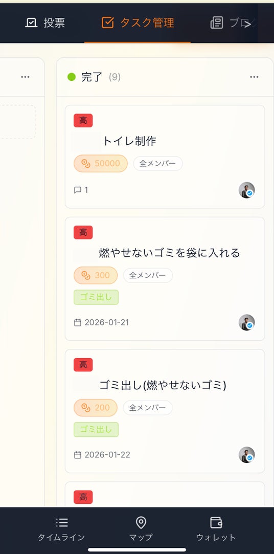 ・会費の一部を原資とした地域プロジェクトへの参画:多拠点会員(一般)から集まった会費の一部を原資に、翌年度に実施する地域プロジェクト(例:空き家再生、イベント企画・運営、地域環境の整備等)を、DAOで企画・投票・実行します。宿泊施設オーナーは、地域の課題や拠点の状況を踏まえた企画提案や合意形成に参加でき、プロジェクトの実行にも関わることができます。