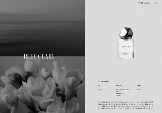 心まで澄み渡るようなアクアの爽やかなトップノートが、まるで澄んだ青空や静かな水面を思わせる清らかな印象をもたらします。
