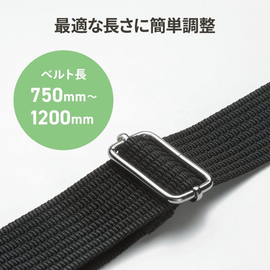 体格に合わせて、ベルトの長さを75cm~1.2mの間で調整することができます。