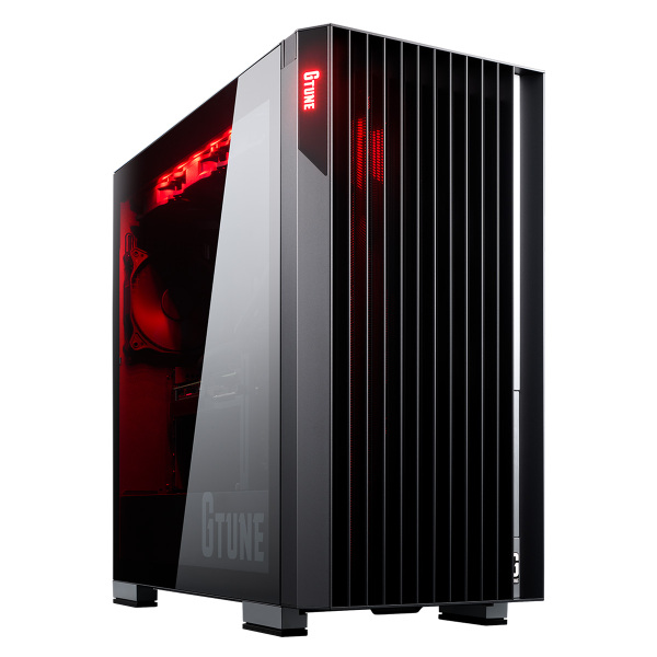 マウスコンピューターが展開するゲーミングPC「G TUNE」ブランドでは、フラグシップモデルにおいてフルタワー型ケースを採用している。ケース前面に配した、アルミ素材スリットが目をひく黒色系筐体が印象的だ。