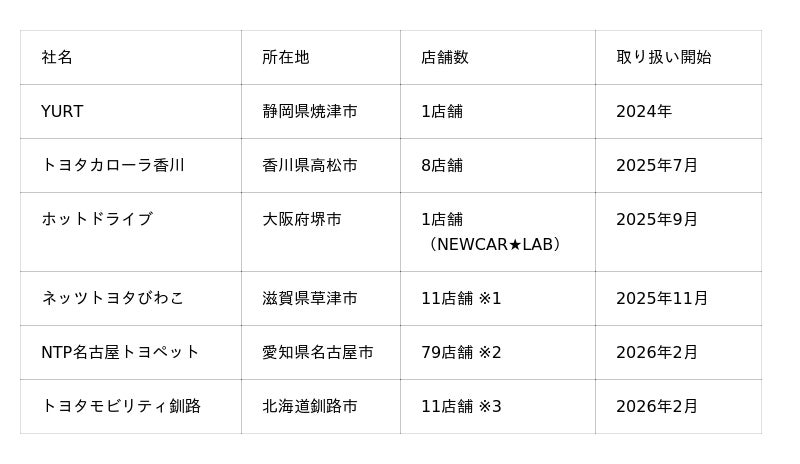 株式会社YURT(読み方:ユルト、本社:静岡県焼津市、共同代表:藁科憲佑・上田隼也、以下YURT)は、シエンタ専用車中泊キット「VANLIFE ROOMKIT」の取り扱い・販売を、トヨタモビリティ釧路株式会社(本社:北海道釧路市、代表:工藤健雄、以下トヨタモビリティ釧路)にて2026年2月13日(金)から開始します。デモ車両のご見学やキットの取り付けは、ご希望の店舗で対応可能です(要予約)。北海道でのVANLIFE ROOMKITの展示・販売は、今回が初めてです。