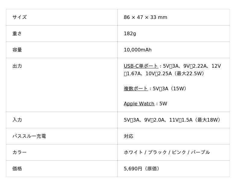 もちろん出力の物足りなさはありますが、タブレットくらいまでなら十分に対応可能ですし、緊急用途かつできるだけ荷物を少なくしたいミニマル派の人にとてもおすすめです。