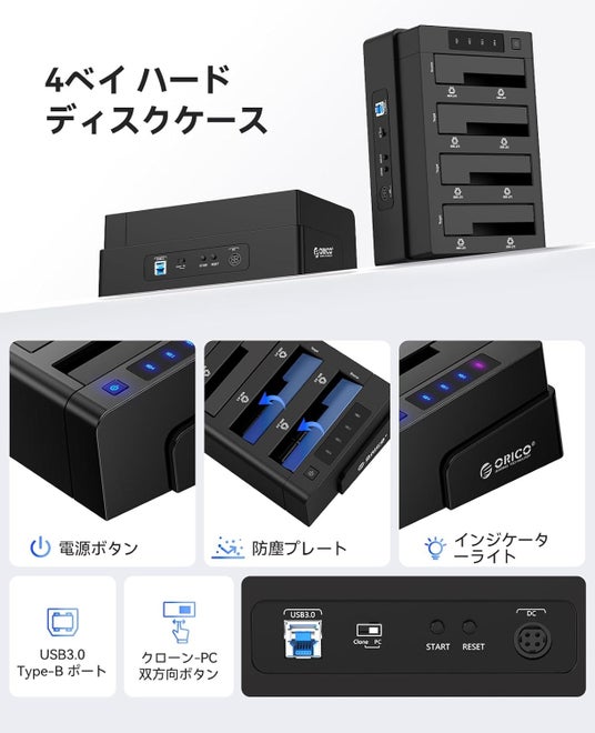 ORICO 4ベイ HDDケース 6648US3 |最大40TB対応(10TB×4)|クローン機能付き