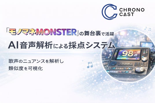 放送技術×AIを核としたソフトウェア開発を行う株式会社クロノキャスト(本社:東京都港区、代表取締役:山上駿也、以下「クロノキャスト」)は、自社の音声解析エンジンを活用した「歌声モノマネ採点AI」が、日本テレビ放送網株式会社(以下、日本テレビ)のバラエティ番組『モノマネMONSTER』に採用されたことをお知らせいたします。