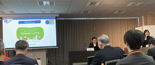 本報告会は、今年度の「未来の教室」事業に採択されたEOL(Edvation Open Lab)事業者の取り組みの一環として開催されました。当社からは、PTA (*1) 支援ツール「Comunii(コミュニー) for PTA」の普及に向けた情報発信やフィールドワークの進捗についてご紹介いたしました。