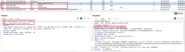 図4を見ると、WordファイルはRTF文書「w.doc」をダウンロードする前に2つのURL短縮サービスを通過しています。