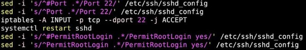 この動作に従って、EncystPHPはSSH公開鍵をインジェクションし、デフォルトのSSHポート(22)が常に開放された状態になるようシステム構成を変更します。