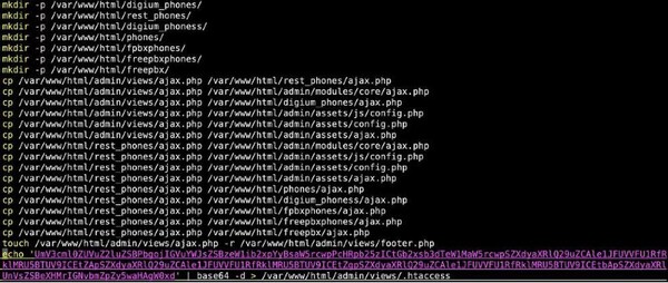 このドロッパーは、パス/var/www/html/ の下に digium_phones/, rest_phones/, digium_phoness/, phones/, fpbxphones/, freepbxphones/, and freepbx/を含む複数のディレクトリを作成します。