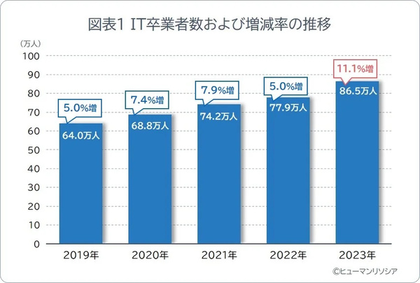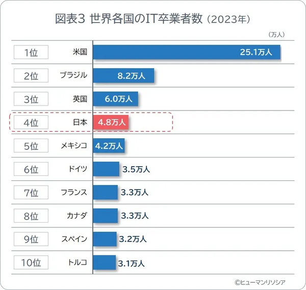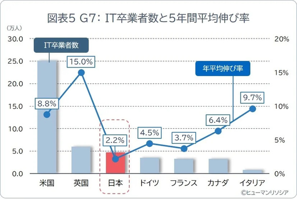 ・日本のIT卒業者数は年間4.8万人、伸び率は年平均2.2%増とG7最下位