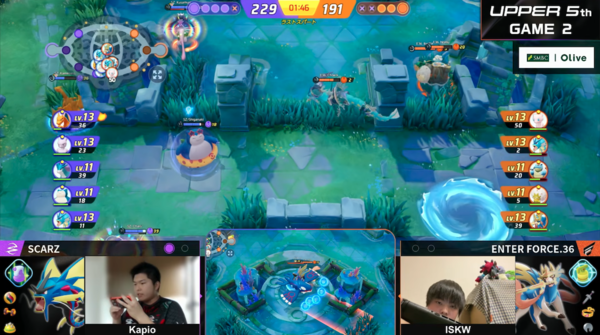GAME 2でも随所で相手を妨害しつつ、たくみな牽制でカイオーガをしっかり削りきったSCRAZの勝利となりました。その細かな技術の上手さは、キャスター陣が試合後のリプレイのたびに感心するほどでした。