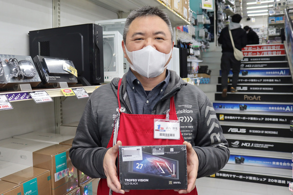 大阪・日本橋のPCパーツショップ「PCワンズ」を取材しました。店舗スタッフ・高石智基さんのオススメは、THERMALRIGHTの小型ディスプレー「Trofeo Vision LCD BLACK」です。手軽に導入できるUSB接続タイプの小型ディスプレーとなっています。