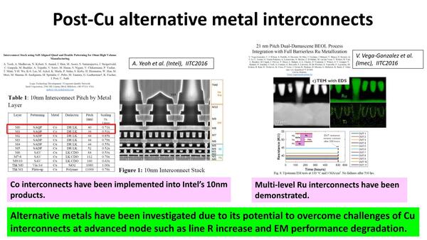 ここで重要なのは、微細化の邪魔にならないように、(Cuのような)バリア層を必要としないこと、それとエレクトロマイグレーションに強いことだ。