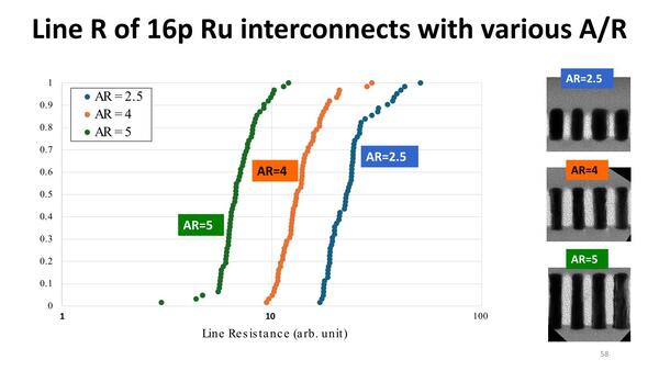 配線抵抗そのものは確実にアスペクト比2.5や4に比べて5の方が下がっていることが示されており、性能的には優秀だからだ。