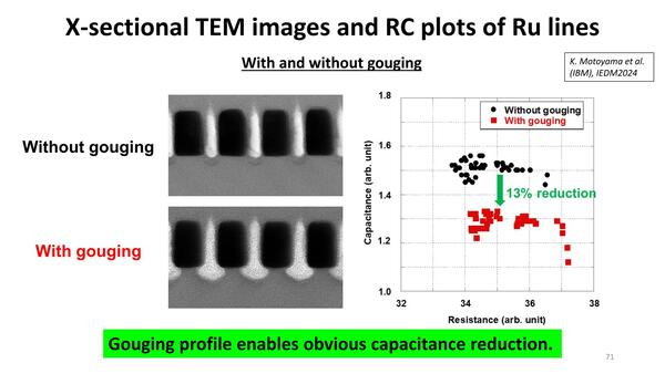 とはいえ先に説明したように、TiNなどを広範に使う必要があり、アスペクト比を高めようとすると高コストになるというあたり、まだ課題がある。現在のRibbon FET世代はもちろんのこと、次のCFETの世代でも間に合うかどうか、という感じかと思われる。