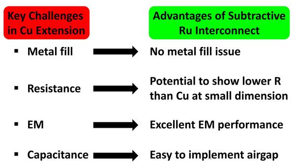 最後に結論として、現在の銅配線で問題になっているさまざまな問題はRuに切り替えることで克服可能であることを示している。