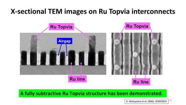 次は層間配線である。セミ・ダマシンを利用することで、Ruを利用した層間配線の構築そのものは容易であるとされている。