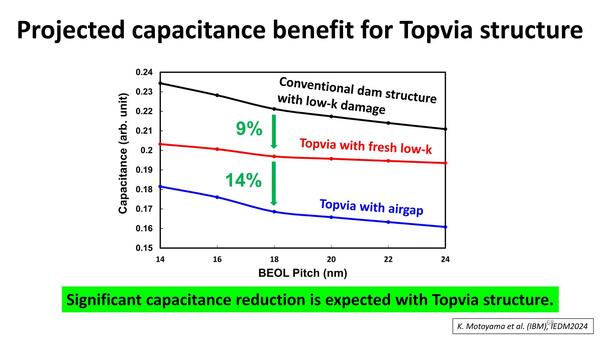 配線間の容量は、従来の製法からAirgapにすることで23%の削減となり、動作周波数という観点で言えばより少ない消費電力で1.22倍の高速性能を実現できるとされている。