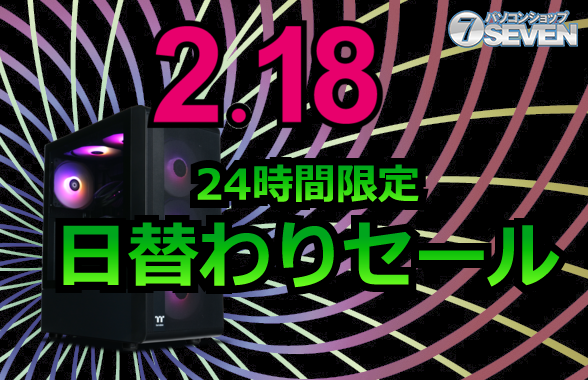BTOパソコンメーカーのセブンアールジャパンは、最新のゲーミングPCとデスクトップPCを大幅に割引する『2026/2/18 24時間限定セール』を2月18日に開催する。この注目のセールでは、最大で100,000円引きの特価が提供されるという。