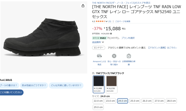 アマゾンでザ・ノース・フェイスのRAIN LOW GTXを入手