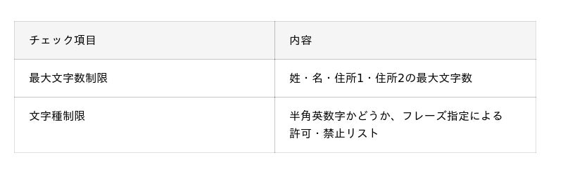 今回の新機能により、全てのストアプランでチェックアウト画面での住所入力中のチェックが可能になります。郵便番号データとの不一致や番地漏れなどの誤りのほか、最大文字数、文字種といった配送サービスによる制約を購入前に確実に適用でき、受注連携時のエラーや配送に関する業務コストを削減することができます。
