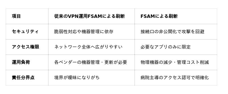 ネットワーク構築のスペシャリストである株式会社FYF(本社:千葉県柏市、代表取締役:吉澤智之)は、こうした管理の隙間を埋め、従来の境界型防御の限界を解消する次世代接続基盤「FSAM(FYF Safety Access for Maintenance)」の提供を強化。物理的な機器管理の負担から解放し、医療現場の確かな安全を支援します