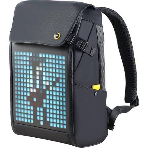 Pixoo Mは、背面に16×16ドットのLED表示部を載せたリュック。アプリからドット絵やアニメーション、文字を表示できる。自分で描いた絵をそのまま背負うことも可能。