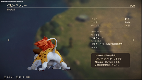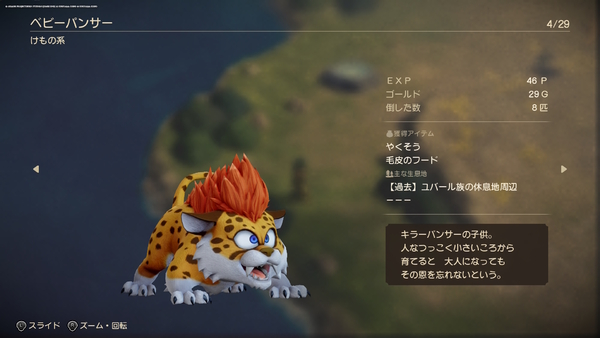なお、モンスター図鑑の説明を見ると、「人なつっこく小さいころから育てると、大人になってもその恩を忘れない」という説明文があり、「ドラゴンクエストV 天空の花嫁」で仲間になるベビーパンサーを思い出すという声も。