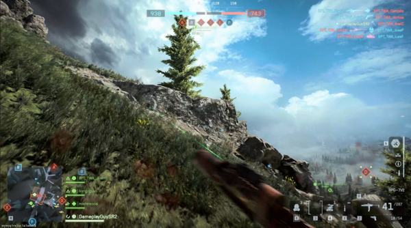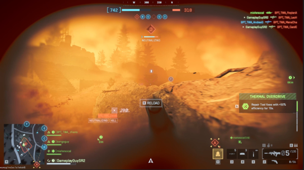 なぜかというと、Contaminatedの舞台が山岳地帯であるということ、荒廃した軍用基地があるということ、高低差があって崖に隠れながら進行しいく感じなど、ところどころでバトルフィールド1っぽいな~と思うことが多かったからだ。マップについては、占拠する必要がある拠点付近には隠れる場所は結構あるが、そこに向かうまでの道のりは見晴らしのよい場所が多く、どこから撃たれるかわからない恐怖と向き合いながら、拠点に向かって突っ走る必要がある。