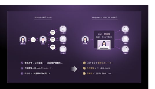 こうした中、当社は、AIで人事課題を解決する総合ソリューションカンパニーとして、AIを活用したプロダクト開発・サービス運営を行っており、先般、AIエージェントサービスの第一弾として、人材紹介のあらゆる業務をAIが引き受ける「PeopleX AI Copilot for 人材紹介」の提供を開始いたしました。