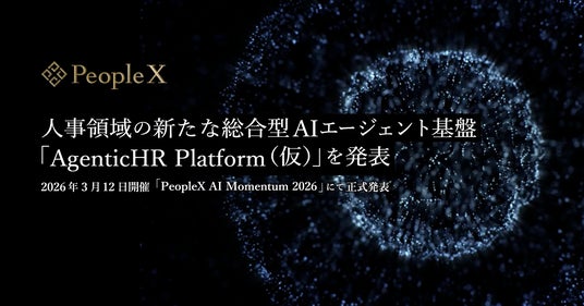 採用から活躍支援まで、AIで人事課題を解決する株式会社PeopleX(本社:東京都新宿区、代表取締役CEO:橘 大地、以下:当社)は、人事領域の各種業務を総合的に自動化する新たなAIエージェント製品「AgenticHR Platform(仮)」の提供を開始することをお知らせいたします。本製品の詳細は、2026年3月12日(木)開催のAIカンファレンス「PeopleX AI Momentum 2026」で正式公開し、またこれに先立ち、2026年2月24日(火)に実施する「PeopleX AI製品体験会&オフィスツアー」で限定公開いたします。