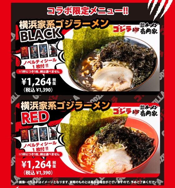 コラボで登場するのは「横浜家系ゴジラーメンBLACK」・「横浜家系ゴジラーメンRED」の2種のラーメンです。