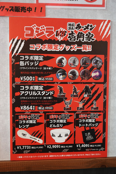 「横浜家系ゴジラーメン」は50店舗限定、コラボグッズの販売は10店舗限定、そして「ゴジラスポット」新宿靖国通り店のみなので、気になる人はフェア特設ページで実施店をチェックしてみてください。