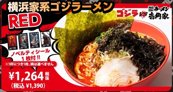 横浜家系ラーメンを提供している壱角家は50店舗限定で、「ゴジラ」とのコラボレーションキャンペーンを1月16日から4月13日の期間限定で開催中です。