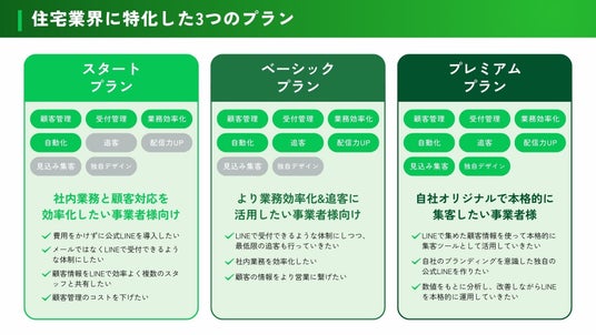 本サービスは、工務店の集客から見学会予約、顧客管理までを公式LINEで一元化。通常50~100万円程度かかるLINE構築を工務店向けにパッケージ化することで、最安プラン178,000円(税別)から提供し、工務店の集客効率化と予約管理の自動化を実現します。