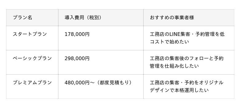 ■ 工務店・住宅会社向けLINE構築の料金プラン(通常価格)