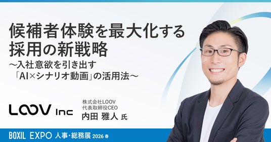 株式会社LOOV(本社:東京都目黒区、代表取締役CEO:内田雅人、以下 当社)は、3月3日(火)~6日(金)の4日間オンラインで開催される、スマートキャンプ株式会社(以下 スマートキャンプ)主催「BOXIL EXPO 人事・総務展 2026 春」に当社代表取締役CEOの内田が登壇することをお知らせします。