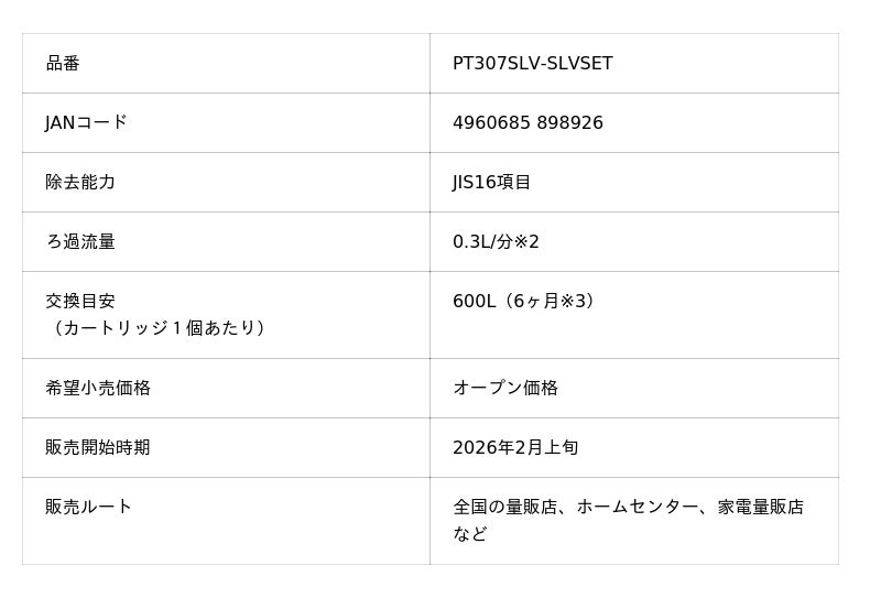 PT307SLVは、東レ独自のろ過システムで、長寿命と高い除去能力、スピード浄水を実現した商品で、昨年の発売から多くのお客様にご好評いただいております。
