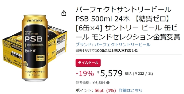 現在開催中のAmazonタイムセールで、「パーフェクトサントリービール PSB 500ml 24本」はが割引価格で販売されています。